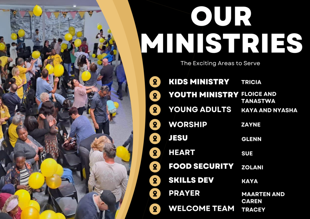 - Children’s Ministry: Share the love of Jesus with our youngest members through teaching, games, and activities.
